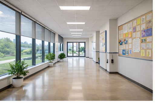 Proper window treatments reduce glare on screens and whiteboards, helping students stay focused during lessons.