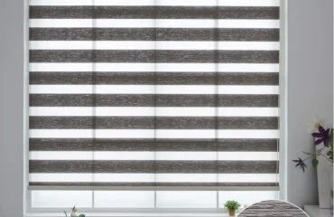 Immerse yourself in the contemporary beauty of our Zebra Shades, featuring alternating sheer and solid fabric stripes that create a striking visual effect.
